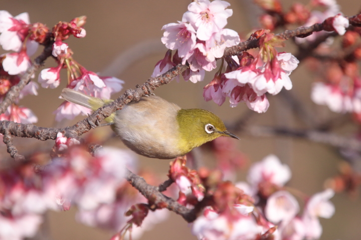 | メジロとカワヅザクラ | |||||||